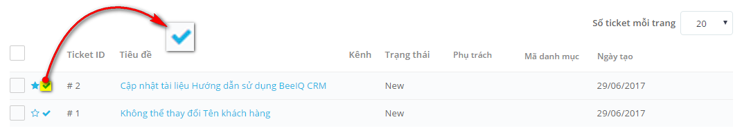 Bước 1. Mở trang danh sách Tickets, tick vào checkbox để chọn các ticket cần gắn nhãn